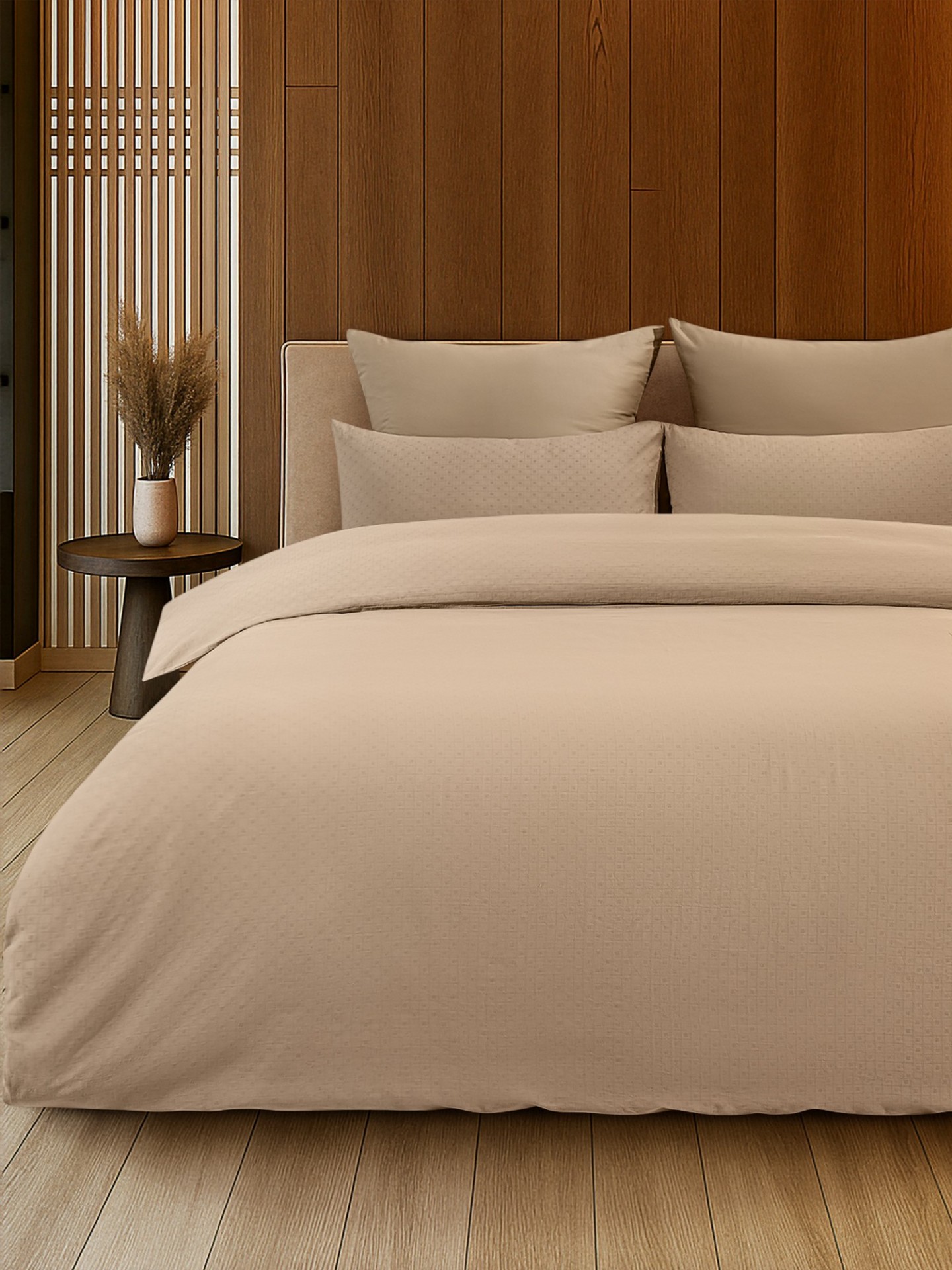 Постельное бельё из сатин-пике — это идеальный баланс между премиальным внешним видом и практичностью на каждый день. Ткань сочетает в себе гладкость сатина и фактурное плетение пике, за счёт чего бельё выглядит стильно, дорого и долго сохраняет форму.